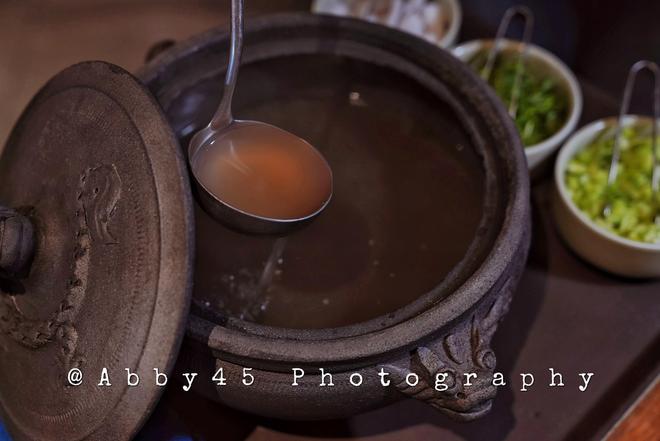 开餐前,侍汤师端上四季草本原汤的仪式感瞬间拉满。这锅汤底历经五代传承,以鲜牛骨与几十种时令草本慢炖,汤色清亮却鲜醇入骨。春顺肝、夏养心、秋润肺、冬补肾的四季调理理念,让每一口都成为御膳级滋养。加入芹菜等配料后,药膳清香与牛骨鲜香交织,成为驱寒暖胃的秋日慰藉。
