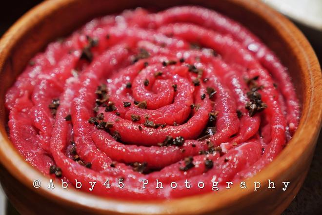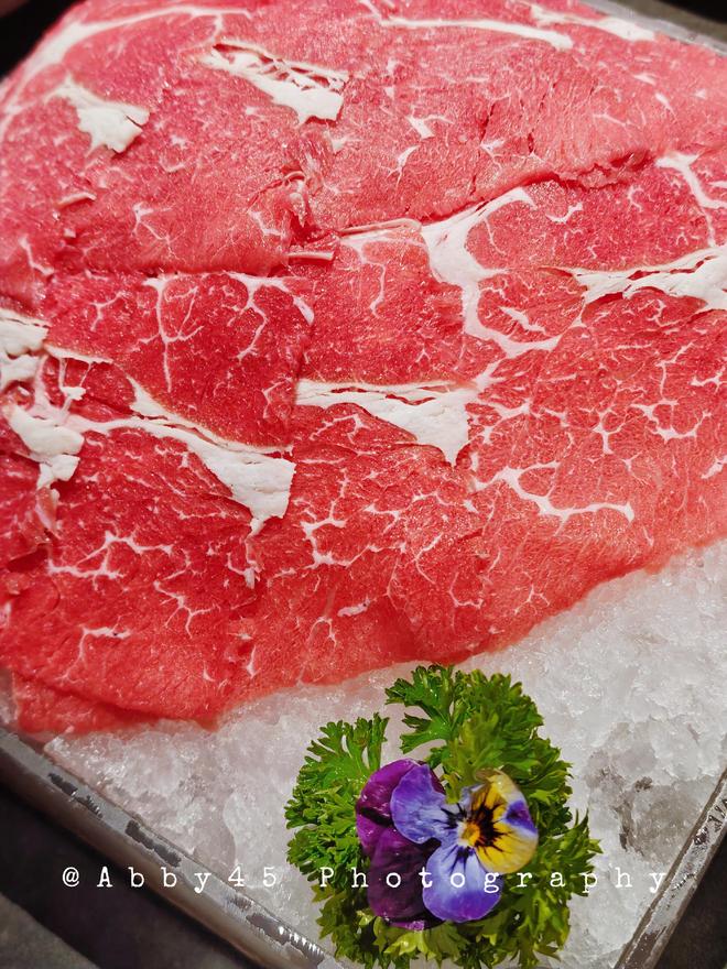 霜降牛肉:美丽的大理石纹,一大片涮几秒就熟了,肥瘦相间,满足感油然而生。