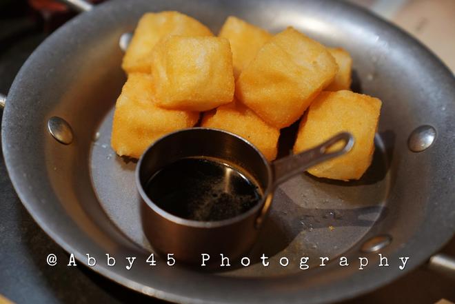 小吃推荐包浆豆腐和手工红糖糍粑,前者蘸干辣椒超爽;后者外酥里糯,蘸红糖甜丝丝,为这场非遗火锅画上圆满句号。